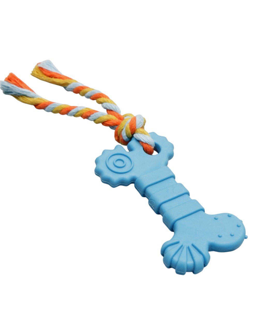 Игрушка жевательная с канатом "Кость с хвостом", синяя