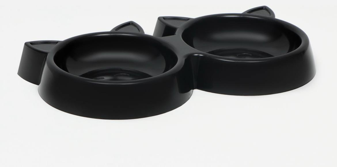 Миска двойная с прорезиненными ножками "Кошка" 27 х 14 х 3,5 см, черная
