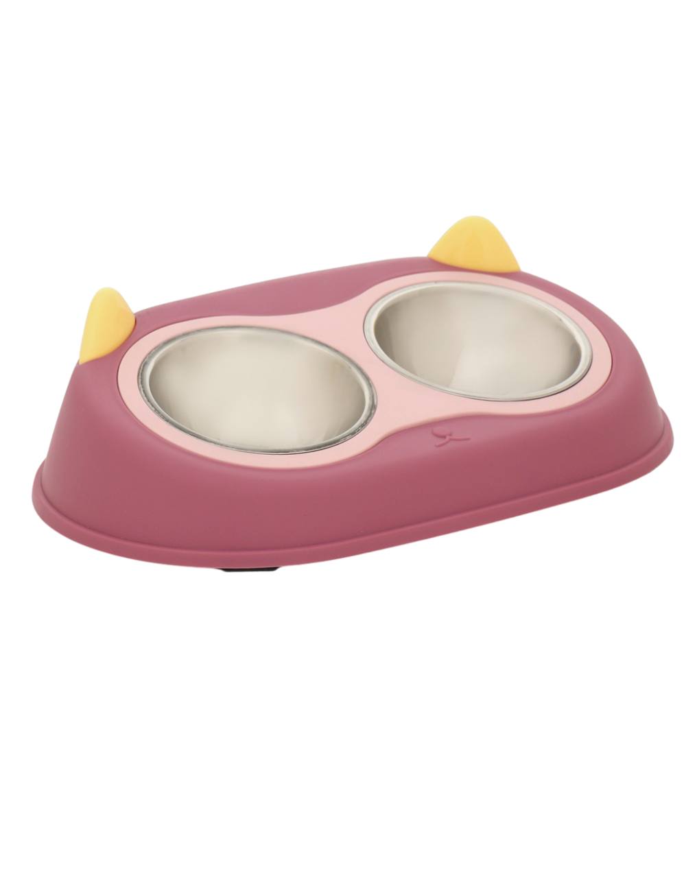 Миска металлическая двойная на пластиковом основании 2 х 160 мл, 34 х 28 х 5 см, бордовая