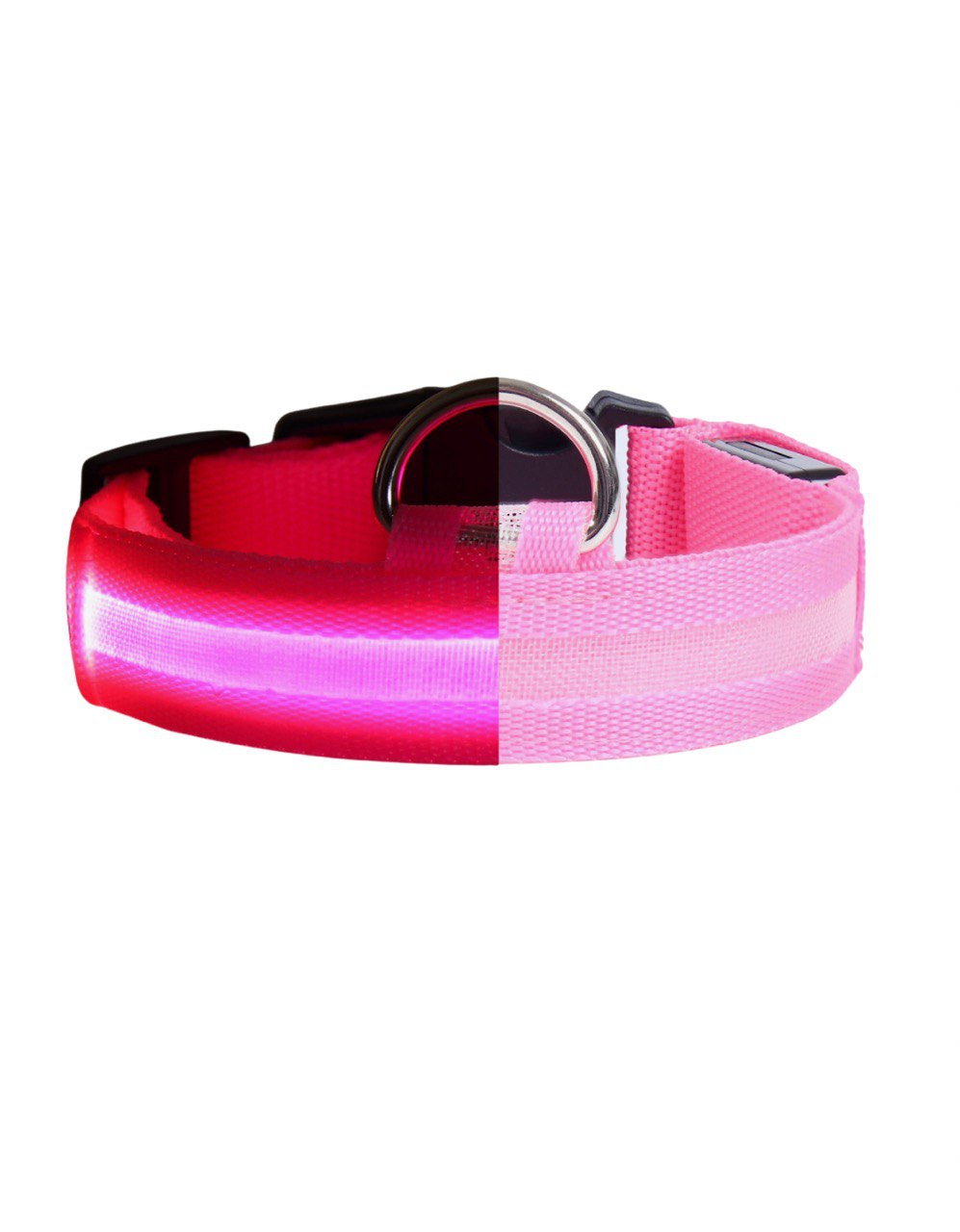 Ошейник с подсветкой размер S, ОШ 35-43 х 2,5 см, 3 режима свечения розовый