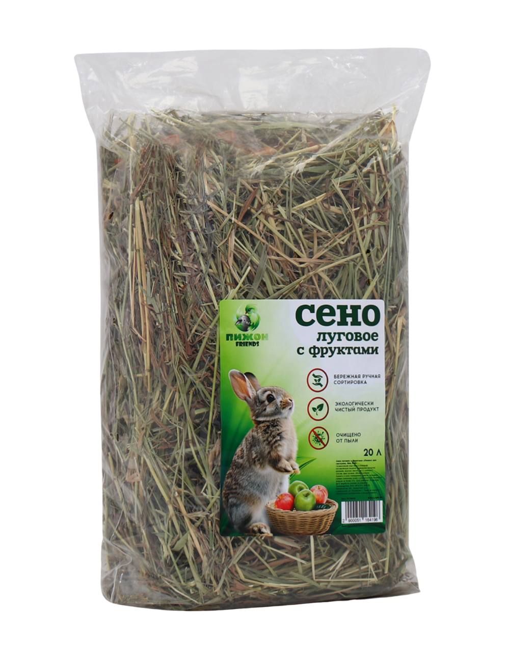Сено луговое с фруктами «Пижон» для грызунов, 20 л, 500 г